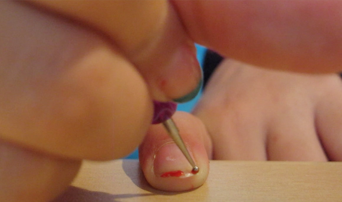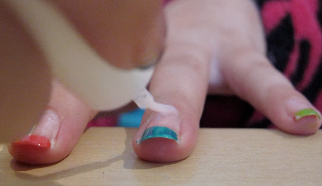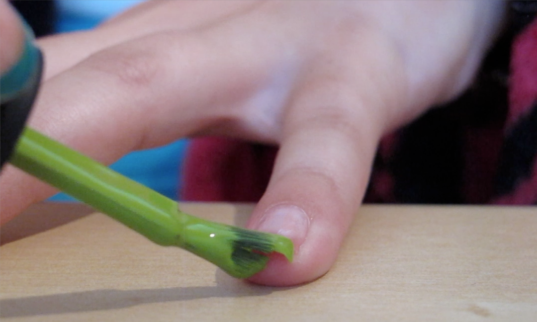 3. Doe de kleuren nagellak rustig over je nageltop. Het is niet erg als je over je nageltop hebt genagelakt.